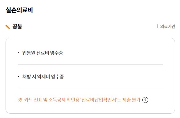 - *카드 전표 또는 소득공제 확인용 진료비납입확인서는 제출 불가합니다.