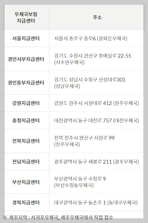 인근 지급센터의 주소를 확인해보세요.
