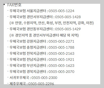 우체국 팩스번호는 각 지역마다 다릅니다. 꼭 확인해보세요.